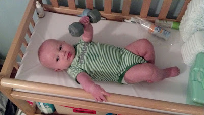 Dear James Michael, how is it that your first 6 monthshave flown by? Not only are you working on your core by sitting up, but you’re also practicing turkish getups with your 0.2 lb dumbell. Your form is looking great, and I’m so glad you heeded daddy’s advice when he suggested rolling out your muscles so you stay loose. Looks like you’re still on track for competing in the 2030 CrossFit Games.