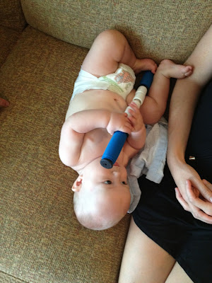 Dear James Michael, how is it that your first 6 monthshave flown by? Not only are you working on your core by sitting up, but you’re also practicing turkish getups with your 0.2 lb dumbell. Your form is looking great, and I’m so glad you heeded daddy’s advice when he suggested rolling out your muscles so you stay loose. Looks like you’re still on track for competing in the 2030 CrossFit Games.