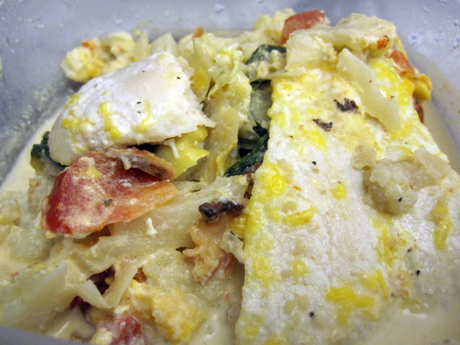 This is a picture of leftovers for my lunch. Not near as pretty as it looked stacked in the casserole dish, but I know it will taste just as delicious! James had two hearty helpings last night!