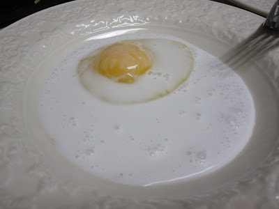 4. One by one, dip steaks in egg batter and then in flour bowl, coating evenly on both sides.