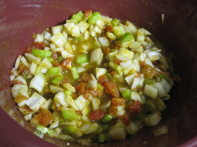 Wednesday, I opted to skip the gym after work due to only a couple hours sleep the night before since the hubby was sick, and instead came straight home and threw together a crockpot meal. Typically, I think the flavors might meld better if you cook crockpot recipes on low for 7 or 8 hours. But in the interest of time, I put my concoction on high and hoped it’d be done in less than 4 hours, when the hubby got home. Luckily, it was, and I’d like to think the warmth and spiciness is contributing to his recovery, along with something called amoxicillin.