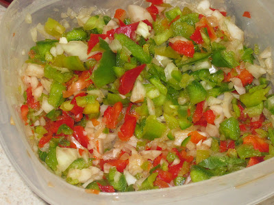 2. Chop your bell peppers and onion. Since I discovered mine chopped, I simply added two cups of it to the sauté pan.