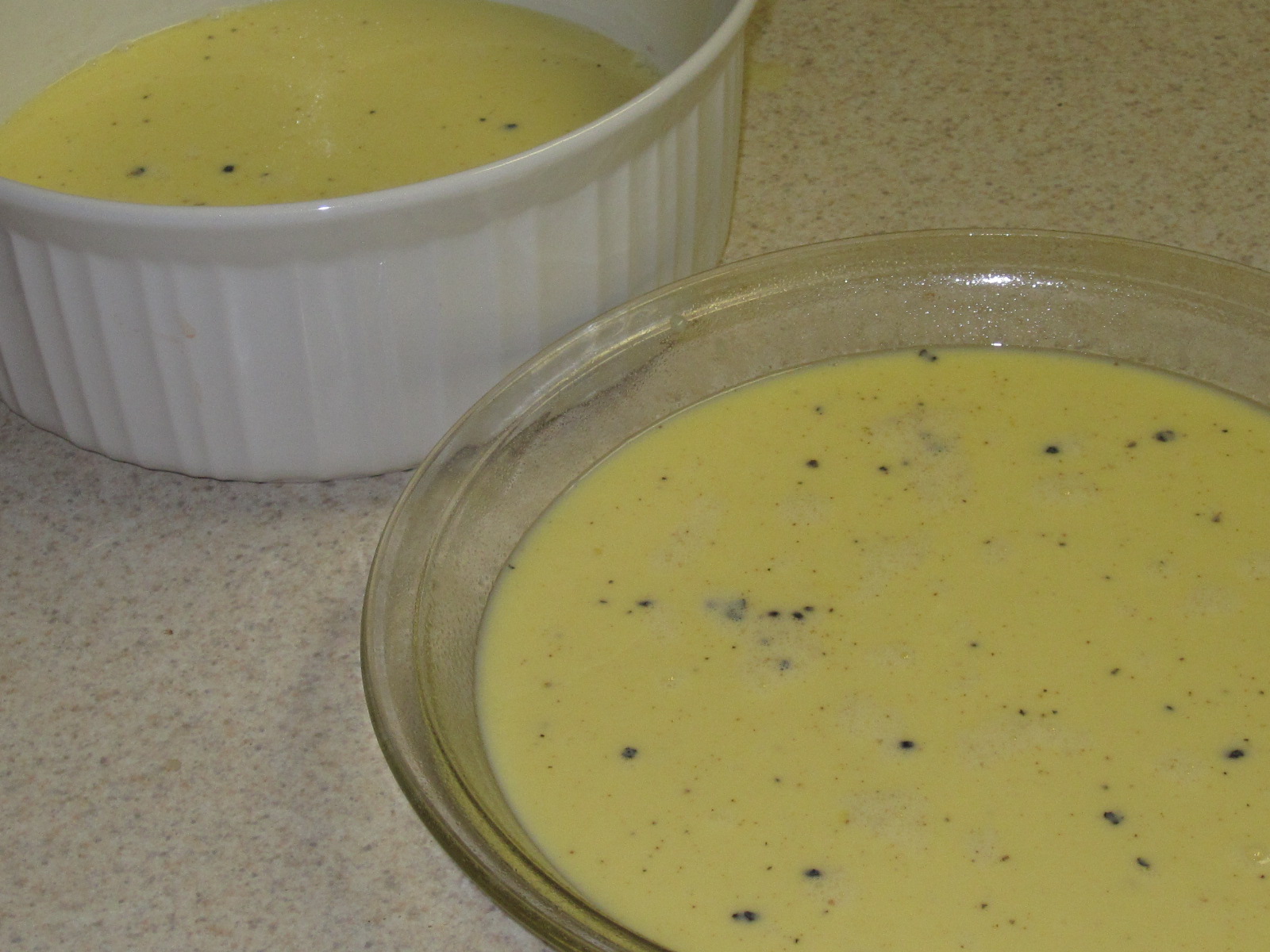 5. Locate two pie dishes and grease. I only have one, so I opted for a round casserole dish as an alternate.
