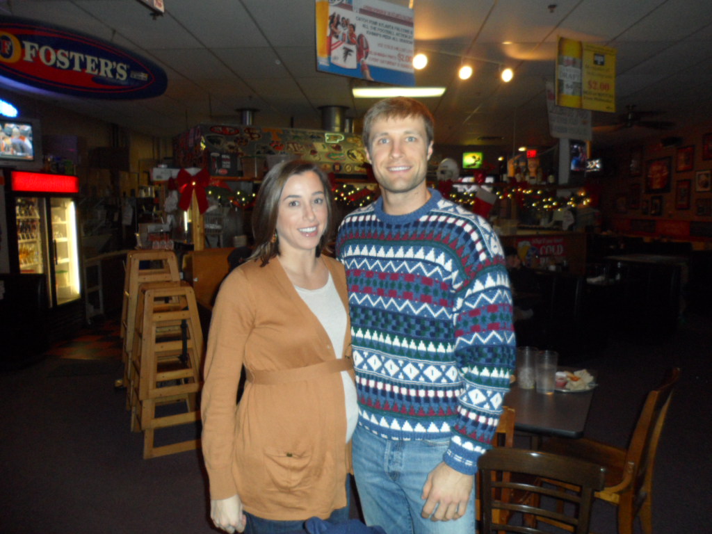 Exhausted, but happy with my progress, we spent a couple hours Saturday night at Johnny’s Pizza enjoying a ‘slice’ of doughless meat deluxe pizza while bidding farewell to friend and gym member Jef Fearless. James stunned the attendees with his choice of attire–no longer are tacky Christmas sweaters reserved for parties of the same name. James is bringing back the 80s!