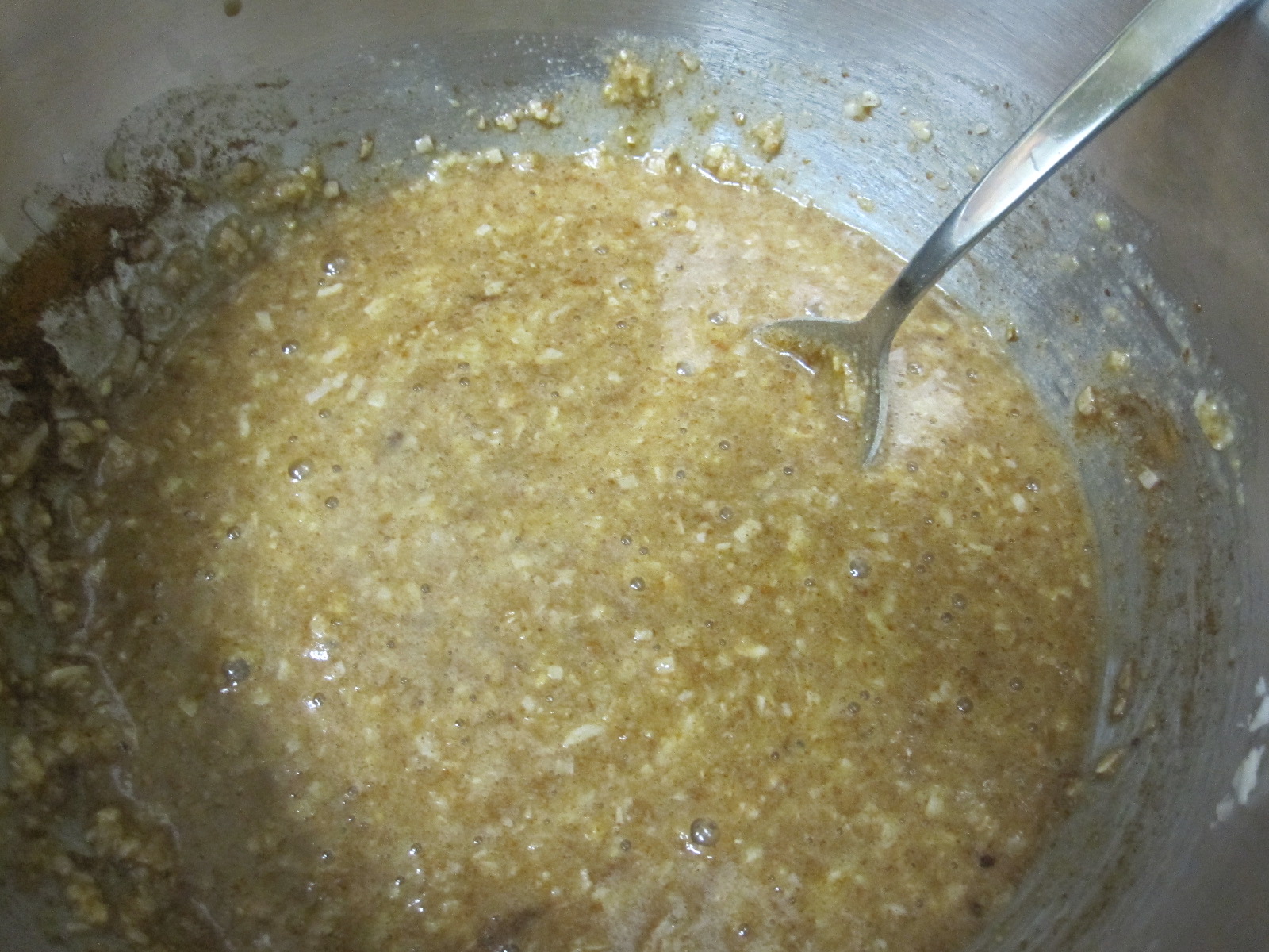 3. Stir in maple syrup, coconut oil, vanilla, cinnamon, baking soda and salt.