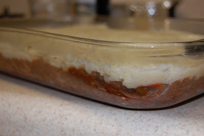 7. Spread cauliflower mash over meat mixture in casserole dish.