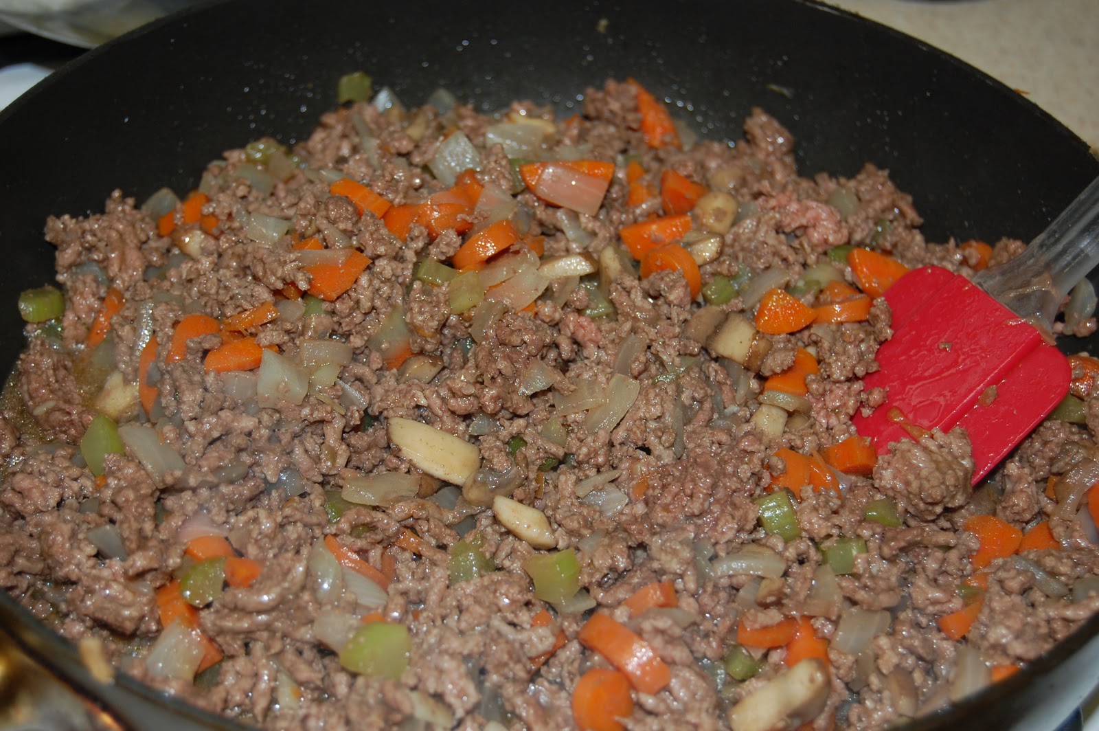 3. Sauté for 10 to 12 minutes, then add in beef and brown.