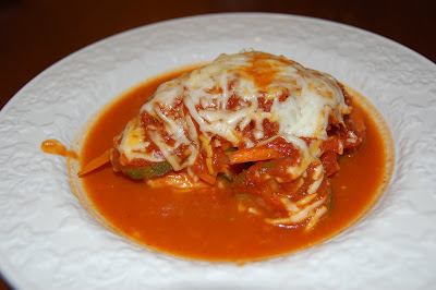 Then I covered with marinara, shredded cheese and parmesan.