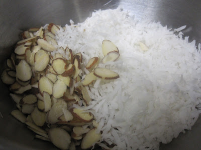 4. In medium mixing bowl, add almonds, coconut and remaining 1 tbsp of maple syrup.