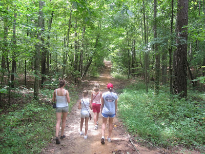 I asked James to take a picture of us from behind walking the trail. Then he told us to hold still for the shot. That’s why we all look a little awkward in this photo below.