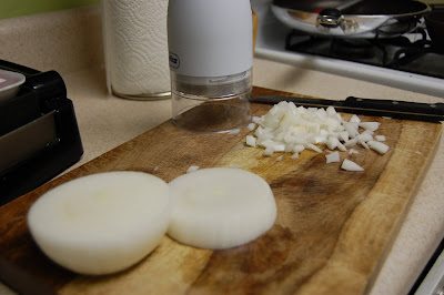 To prep the burgers, I diced up half a large onion, then used our ‘as seen on TV’ chopper to make the onion super tiny. At this point, I could barely keep my eyes open from the burning, which lasted the next 30 minutes.