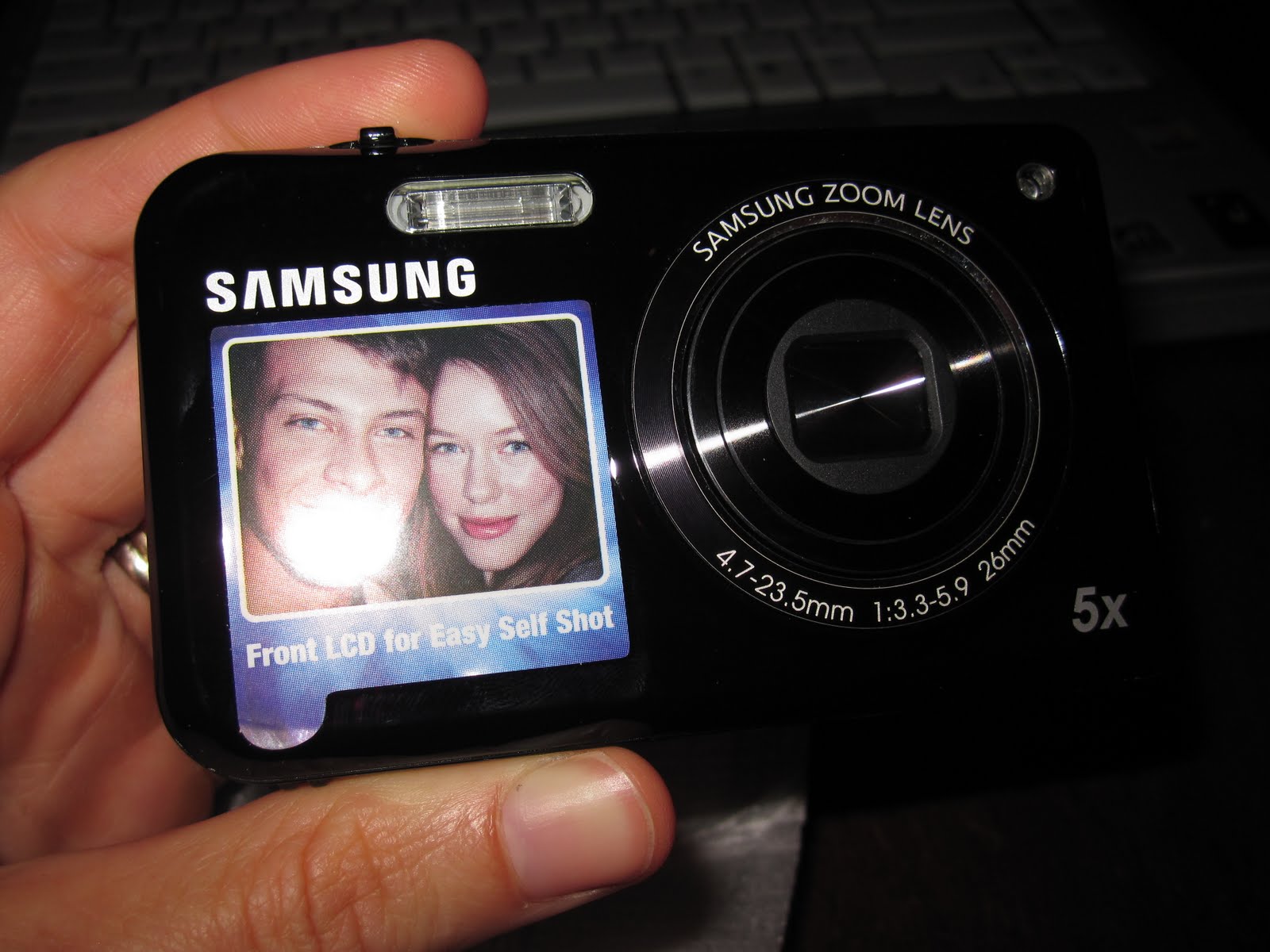 So, on Tuesday, I redeemed 96 of my 97 points to purchase this Samsung camera, which retails for $280 at Best Buy. One cool feature is the front LCD screen that makes it easier to take self shots. If you’re taking pictures of kids, you can also set it so that a cartoon plays on this screen to get their attention. Smart, huh?