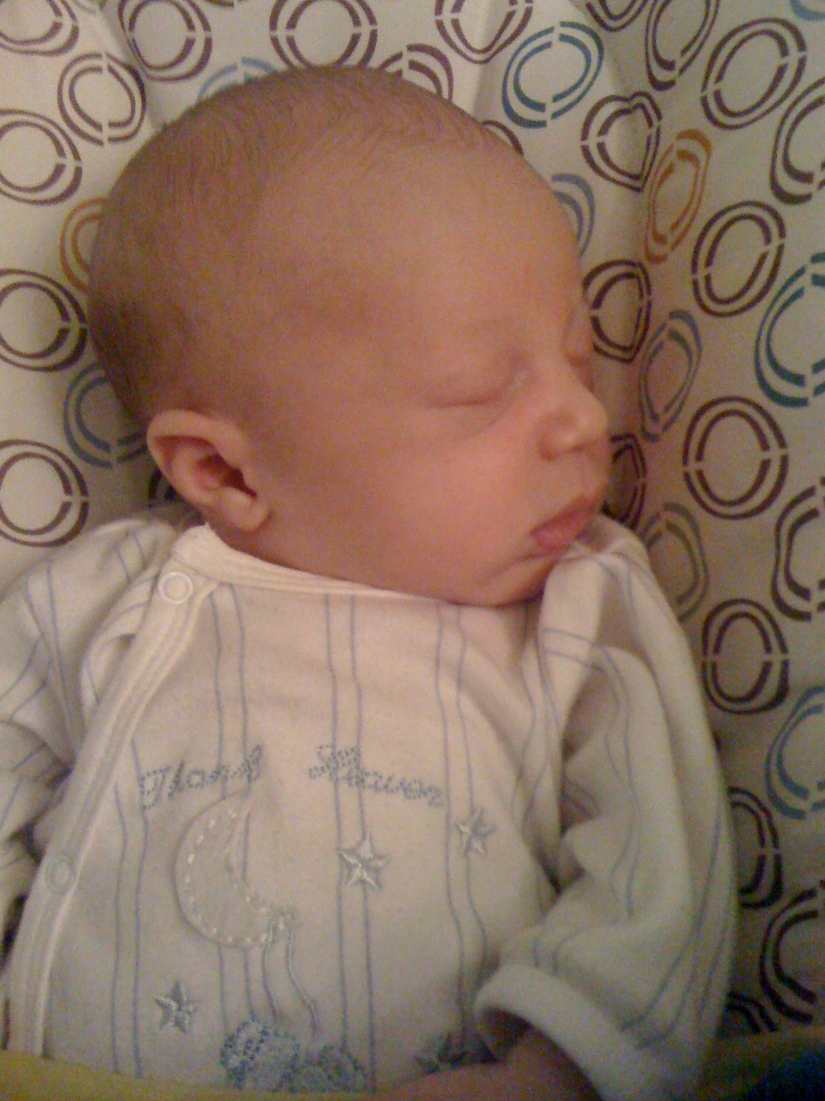 Saturday night, James Michael came down with a cold and his sneezing became more frequent and he developed a cough. By Sunday the poor fellow was downright miserable–and so was his mom. Neither one of us has slept much the past couple nights–he wakes himself up often coughing, and I wake up constantly making sure he’s still breathing ok. My mom told me it breaks your heart the first time your baby gets sick, but I just wasn’t expecting it to happen this soon.