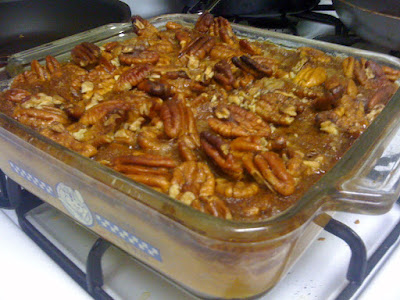 During JM’s long nap this afternoon, I did manage to make a sweet potato casserole using palm sugar, gluten-free flour and extra butter and pecans–because that’s how we roll in the Hobson house. We’re definitely not afraid of consuming fat 🙂 And I’m still on my salad kick and have been downing some chocolate milk lately, too.