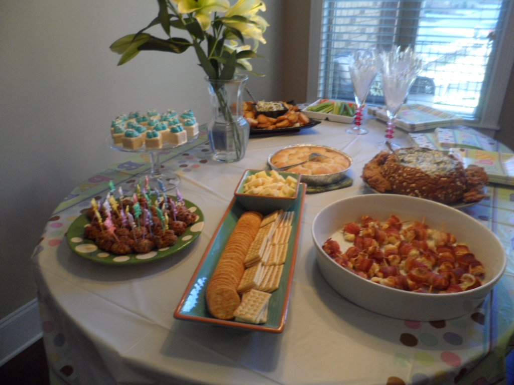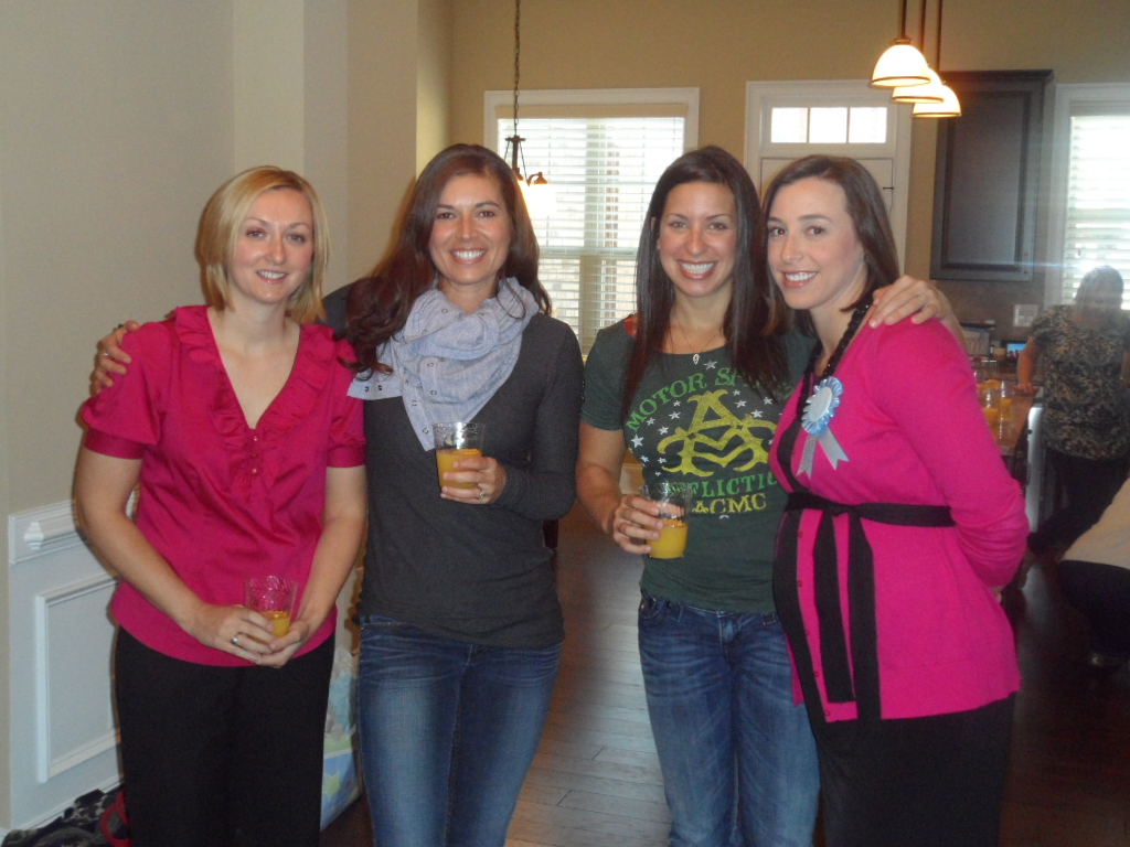 Last Sunday, some of my girlfriends threw me a brunch baby shower in Vinings the day after I turned 32 weeks–wowzer, 8 months! Brunch was a great idea, since I absolutely love breakfast foods. Those who know me well know that I eat bacon or sausage practically every morning for breakfast. My friend Sara even made a gluten-free breakfast casserole that was delicious!